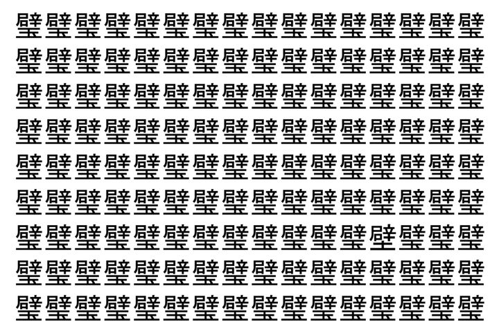画像に並んだたくさんの「璧」という漢字。 その数144個なのですが・・・、実はその中に1つ違う漢字が紛れ込んでいます!!