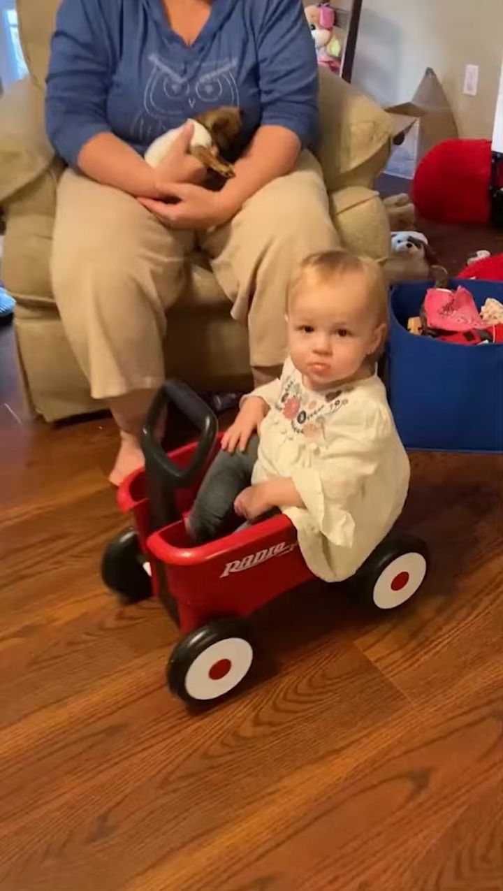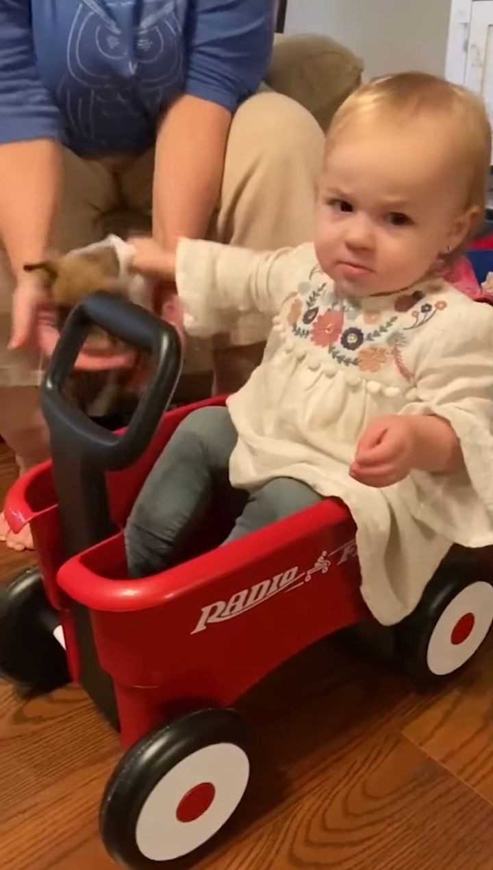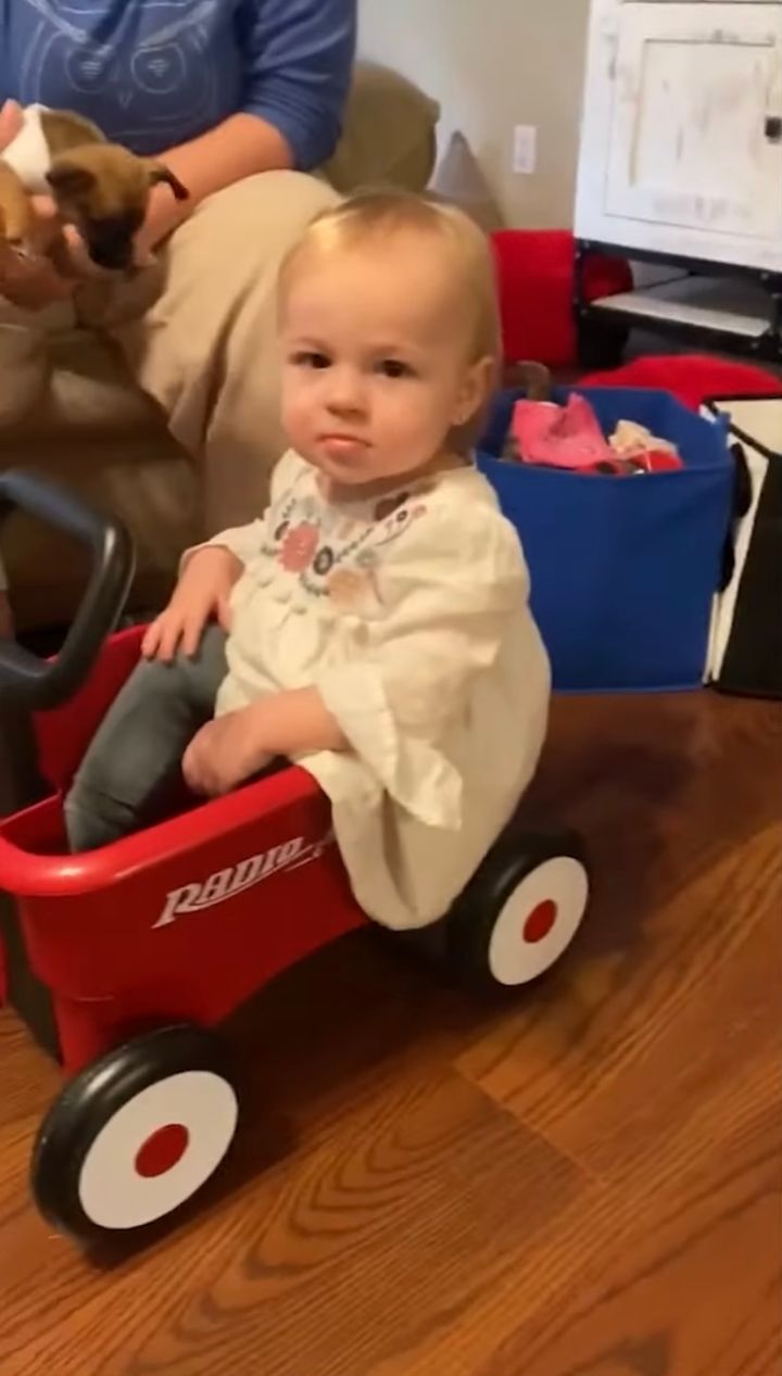 とあるお宅で撮影されたこちらの動画には、幼い女の子が見せたあるリアクションが捉えられています。