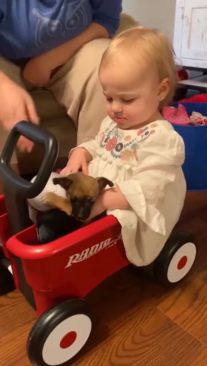愛らしい子犬と幼い女の子の尊いツーショット。 感動シーンになるかと思われましたが、まさかのオチが待っていました。