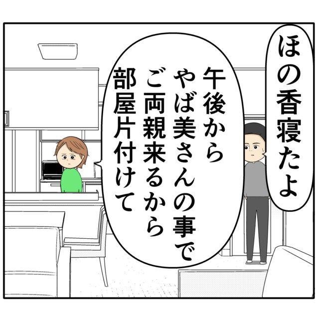 やば美さんのことを話すため、今度はすみれさんが良し男さんの両親を呼んだのでした。