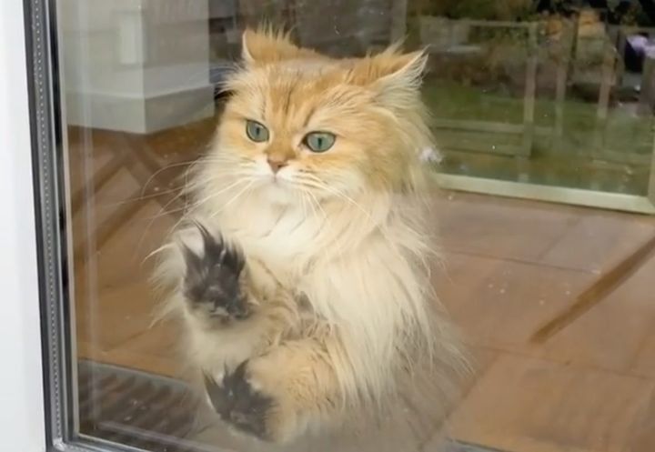 3. 泥遊びしてきたな? 真っ黒な手でドアを叩く猫さん。