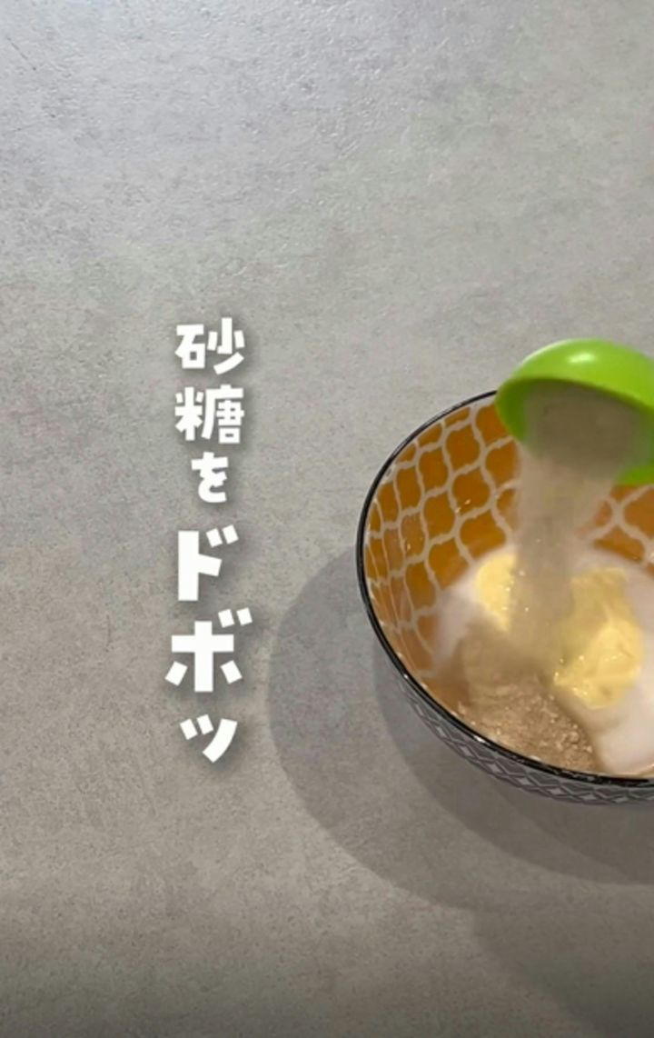 マヨネーズを加えた水溶き片栗粉に、砂糖を加えます。甘い玉子焼き、甘さひかえめの玉子焼き、好みはそれぞれなので、分量はお好みで調整してください。