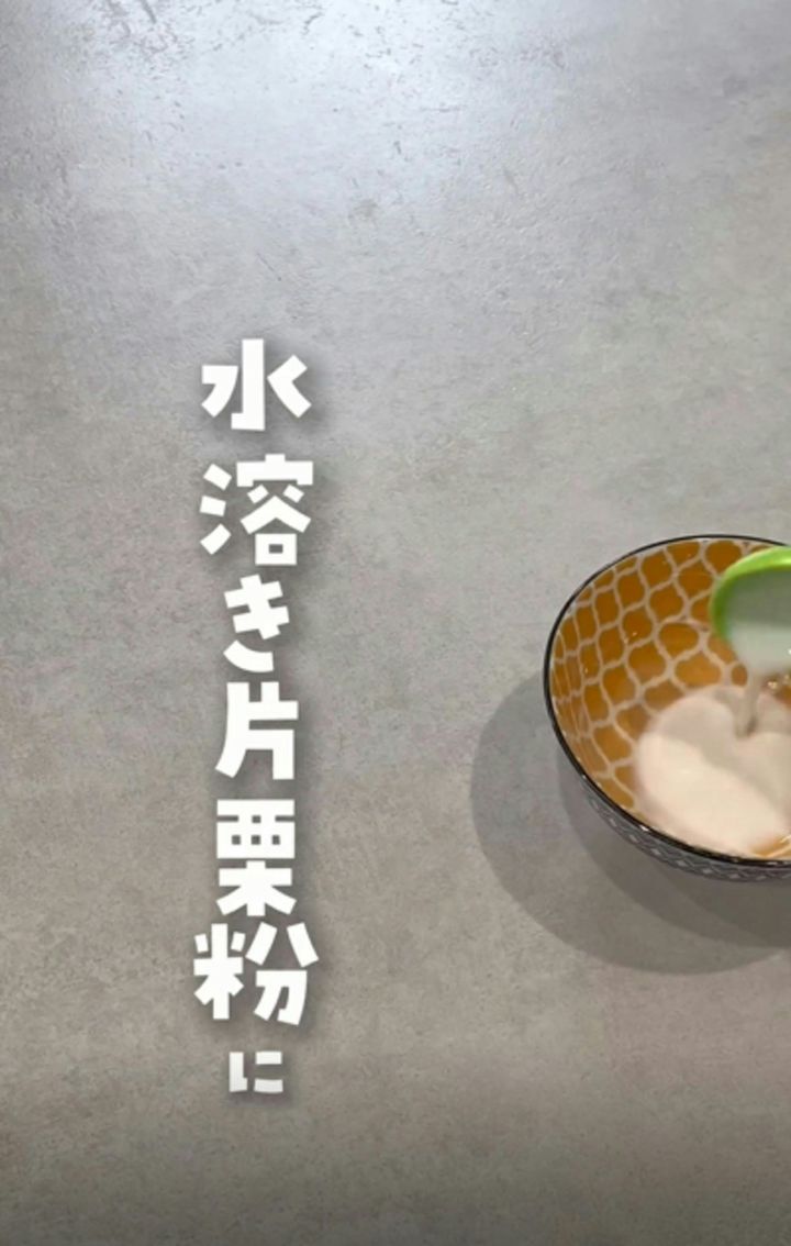 調味料を入れた水溶き片栗粉をよく混ぜ合わせておきます。