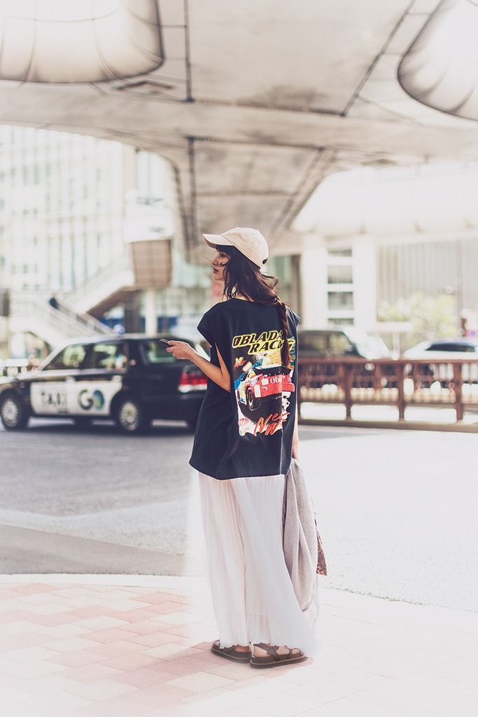 色もアイテム自体も甘い、ガーリーな白のフレアスカートは「広がりすぎない」形で甘さひかえめに。軽さのある白だから、素材感、プリーツやドレープなどニュアンスのあるデザインで、ほどよい「重み」を出すこともバランス良化のポイント。