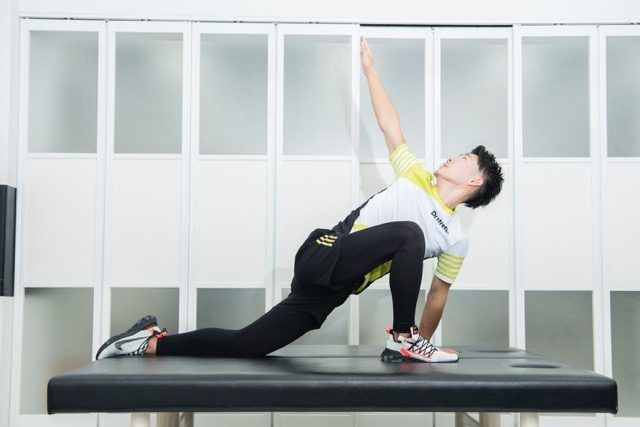 腕と脚を変えて反対側も同様に行います。この(1)〜(4)を1セットとし“左右各3セットを目標”に実践してください。なお、期待する効果をきちんと得るためには「つま先とひざの方向が同じになっていること」「下半身の位置を固定して上半身だけをしっかりひねっていくこと」の2つがポイント。また、内側にひねっていく際には胸が縮んでいくこと、外側にひねっていく際には胸が開いていくことをしっかりと感じてくださいね。<ストレッチ監修:金井俊記(トレーナー歴6年)>