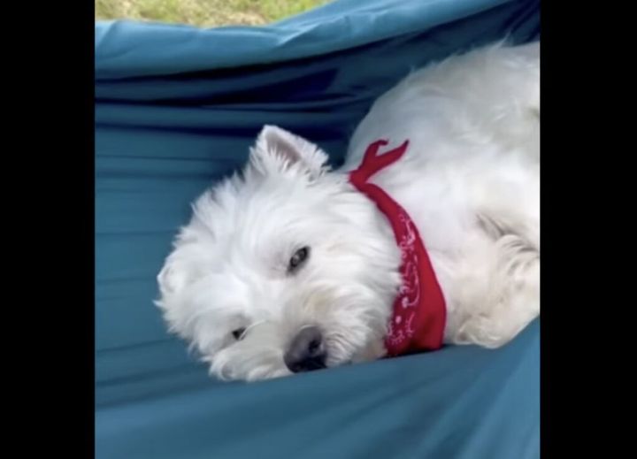 3. ハンモックでお昼寝する犬さん、最高に心地よさそう♪