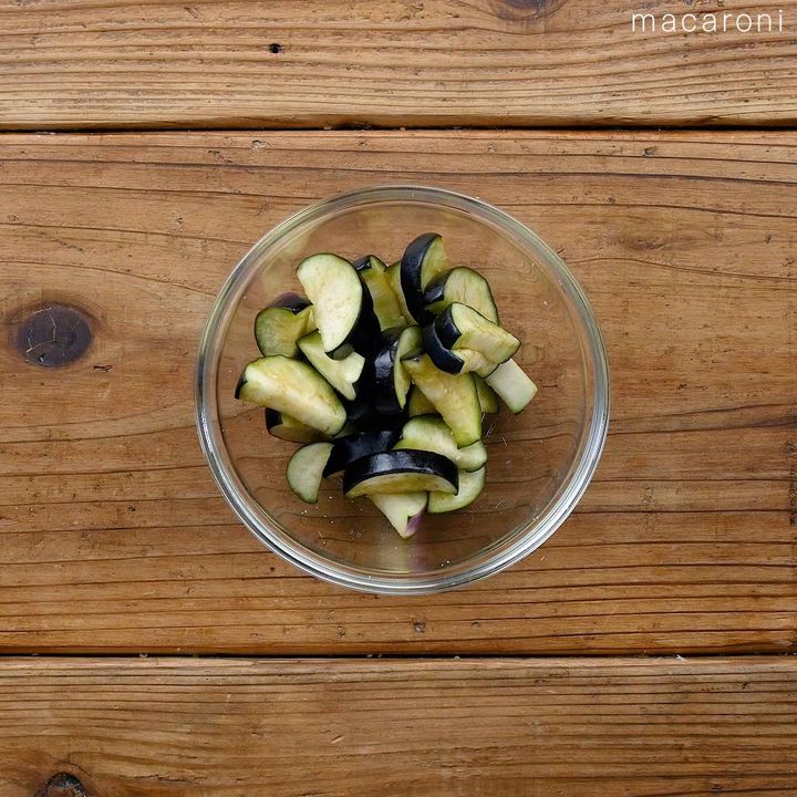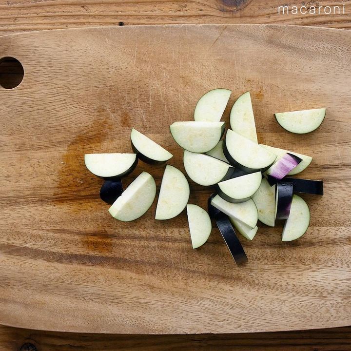 なすは少し厚めに切ると食感が残り、歯応えよく仕上がります。