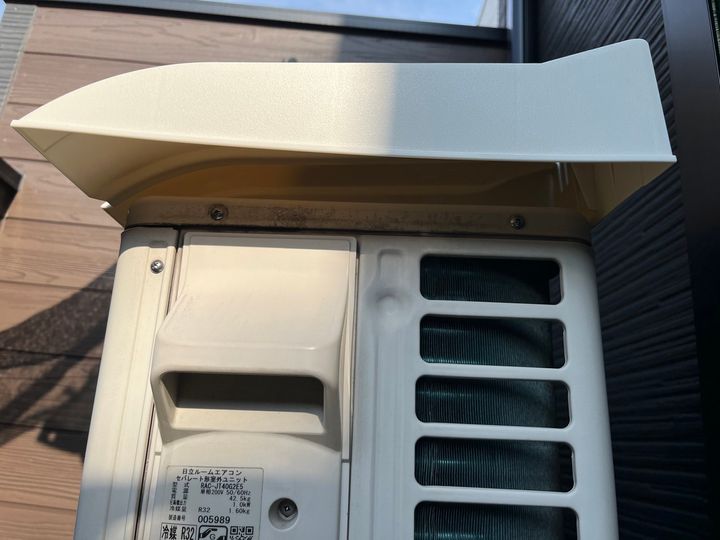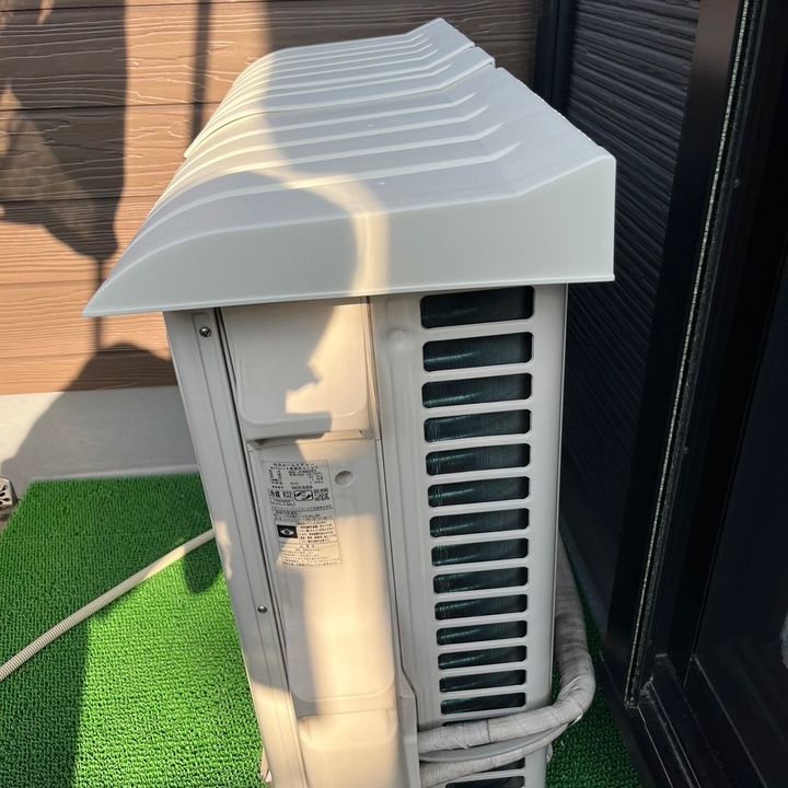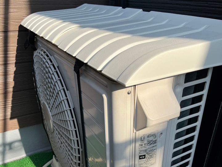 室外機は直射日光が当たるので上部に当たる日差しを防ぎ、室外機が高温になりにくくすることで節電効果に繋がるそうです。