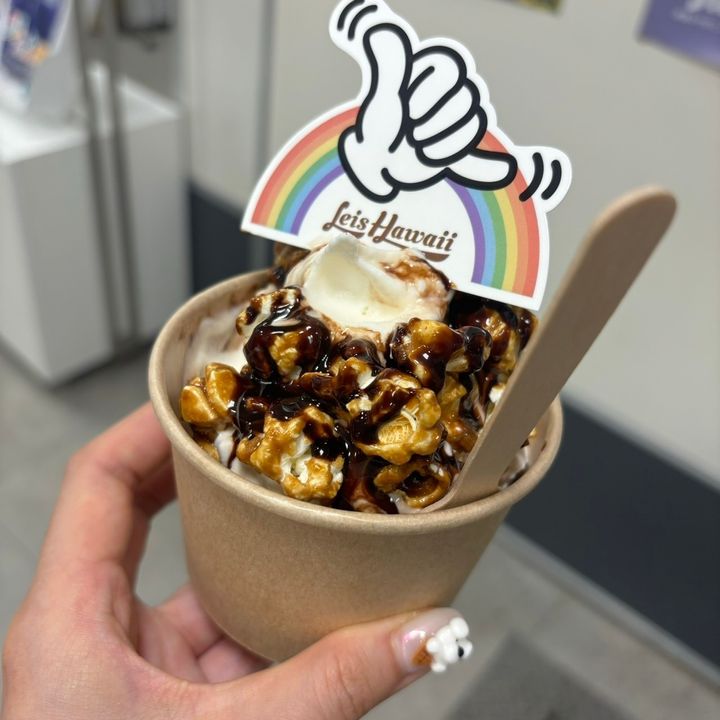甘〜いポップコーンがたくさんのったソフトクリームは映え間違いなし!