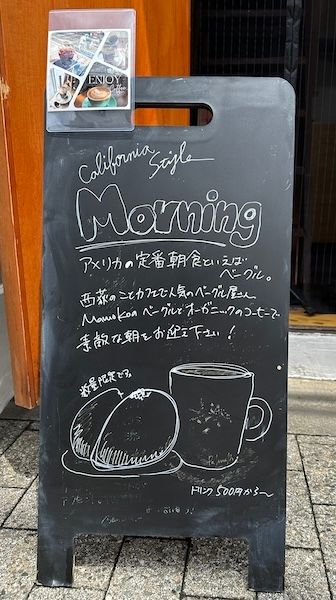 コーヒーは甘さと優しさ、瑞々しさを感じました。ベーグルのモーニングは珍しいですよね。モーニングは朝8時からです。