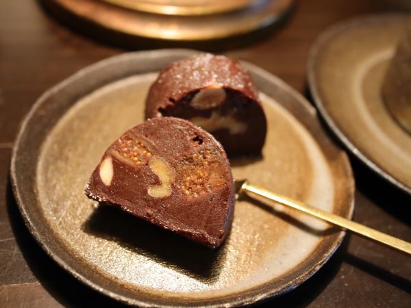 チョコレートには、ふんだんにイチジクやレーズンが入っており、ラム酒の豊かな香りがたまらない。