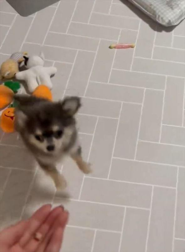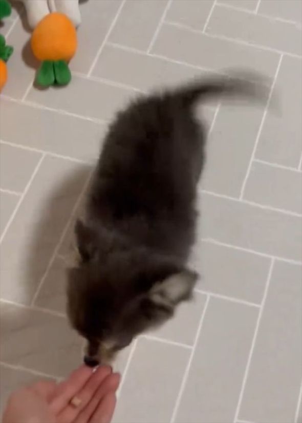 しっぽをふる激しさを見ると、初めてのおやつに心から喜んでいることがわかります。 興奮するあまり、最初に二足立ちをする瞬間もかわいいですね!