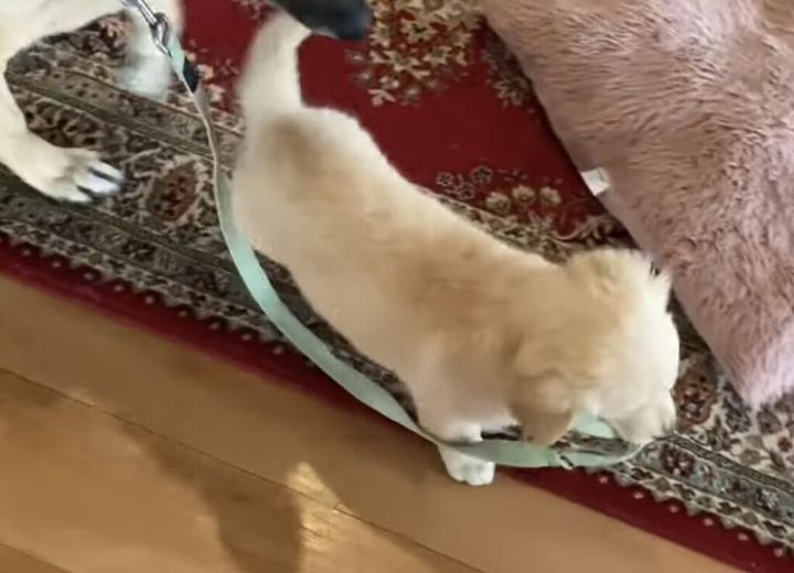 3. 先輩犬とお散歩の練習かな? はりきっちゃう子犬さん。