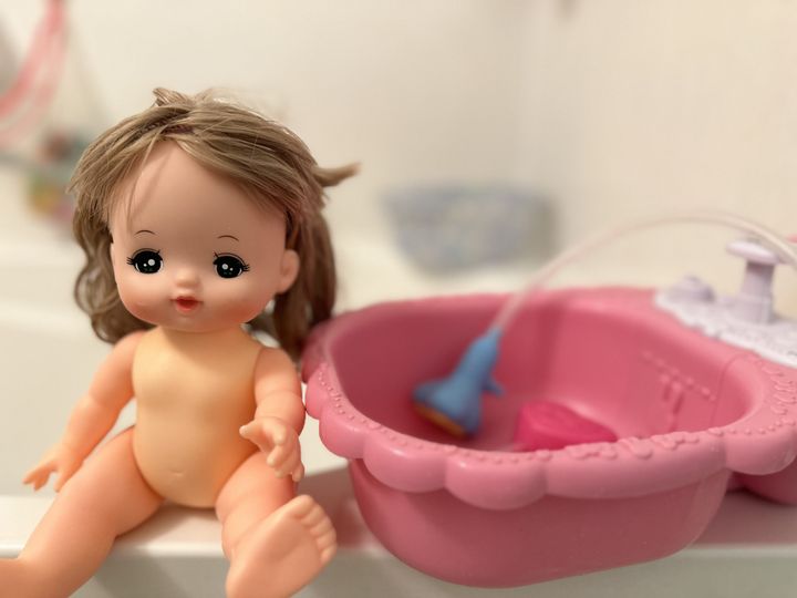 元々は今小学2年生のお姉ちゃんが幼稚園の時に溺愛していたメルちゃんですが、今は3歳の息子がお風呂の美容室ごっこで使っています!