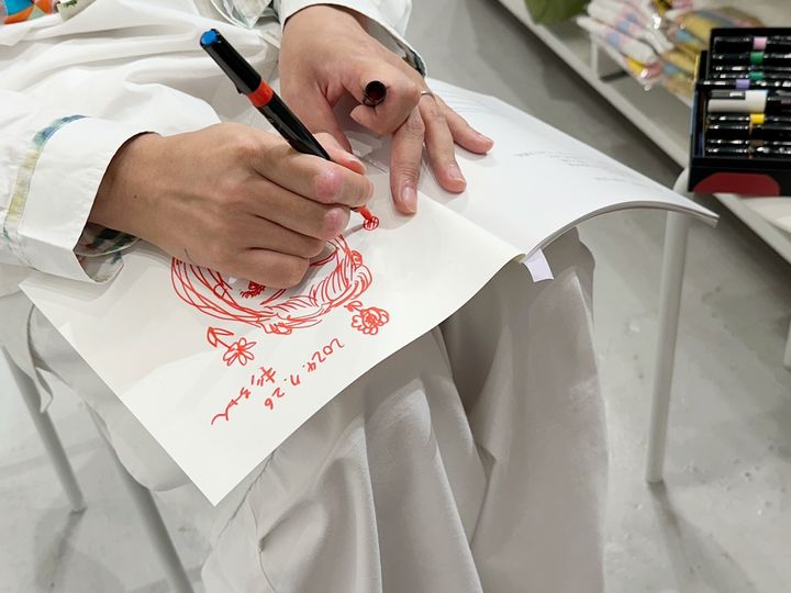 さらに、画集の白いページにご本人が絵を描いてくださるとのことで、
