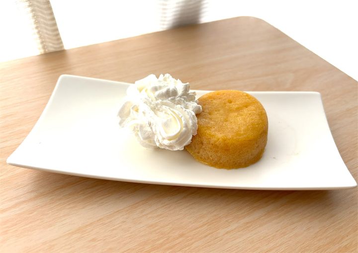 シンプルな味のエッグケーキに、生クリーム(分量外)がよく合っています。