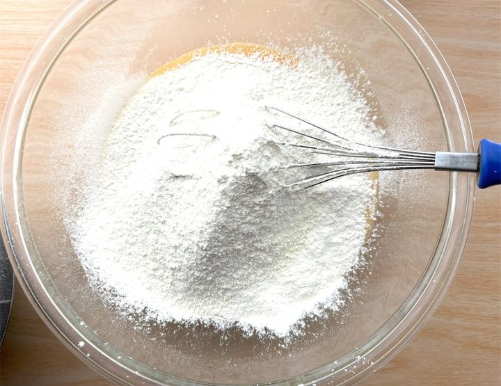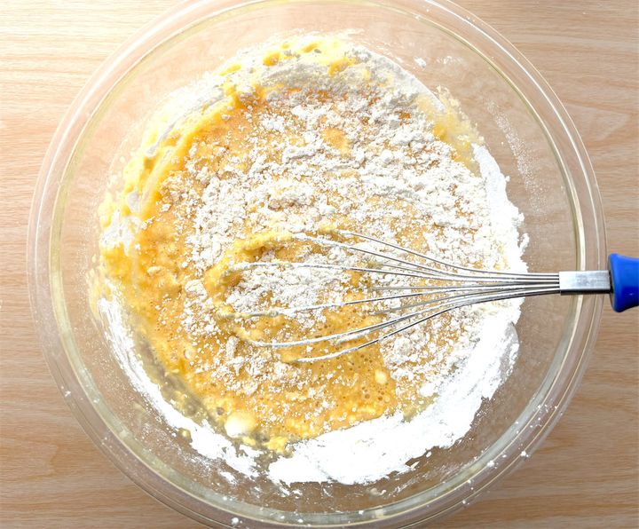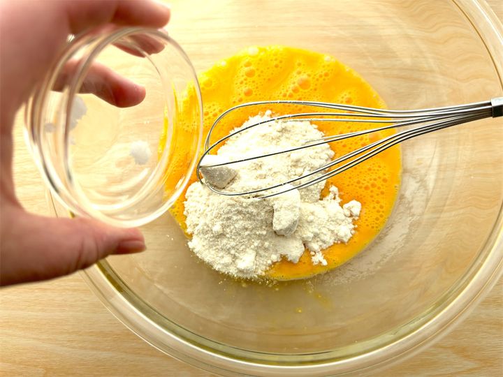 粉を加えたら、だまにならないように気を付けながら混ぜましょう。