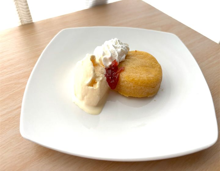 バニラアイスの濃厚さに、いちごジャムの甘酸っぱさが、卵味が濃厚なケーキと素晴らしくマッチしています。