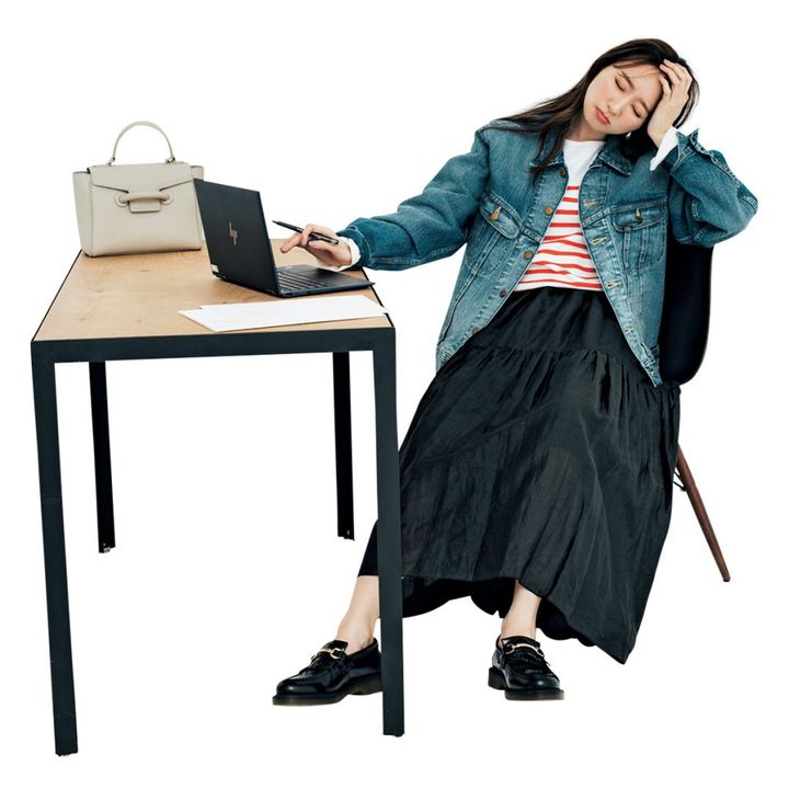 ボーダーT着回し 黒ティアードスカート¥31,900(サクラ/インターリブ)Gジャン¥18,700(Lee/エドウイン・カスタマーサービス)バッグ¥52,800(ヴァジック/ヴァジックジャパン)ローファー¥27,500(ドクターマーチン/ドクターマーチン・エアウエア ジャパン)イヤリング¥3,150(アビステ)