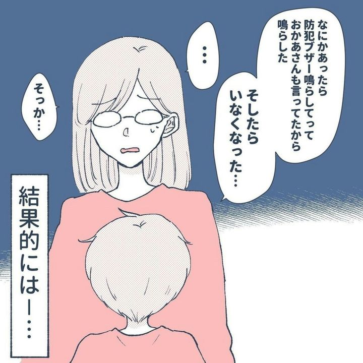 不審者に腕をつかまれた、息子のひかるくん。とっさにランドセルにつけていた防犯ブザーを鳴らし撃退しました。日ごろからななみさんに言われていたことを思い出し、ブザーを鳴らしたひかるくんの勇気はすごいですよね。