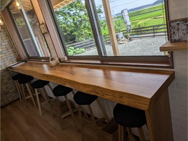 店内にはカウンター席が6つ。表の広いスペースにはテラス席もあります。暑さの厳しいこの時期はテラス席は使用していないとのことですが、気候のよい時期にはきっと心地よい時間が過ごせることでしょう。