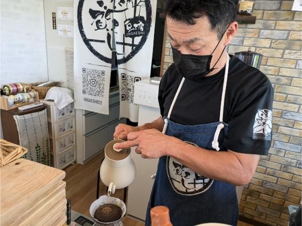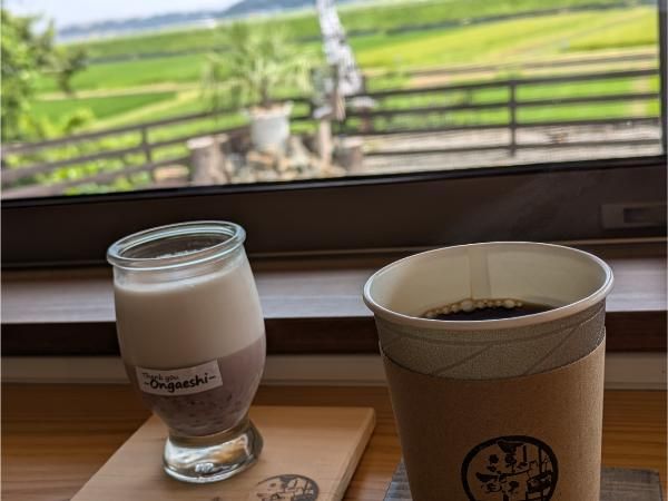 こちらのお店は、遠賀川沿いののどかな田園風景の中にある”豆工房_遠賀えし-ongaeshi-(おんがえし)”。 厳選された豆を挽いたこだわりのコーヒーと、自家栽培の小豆を使ったスイーツがいただける、2024年1月1日にオープンした小さなカフェです。
