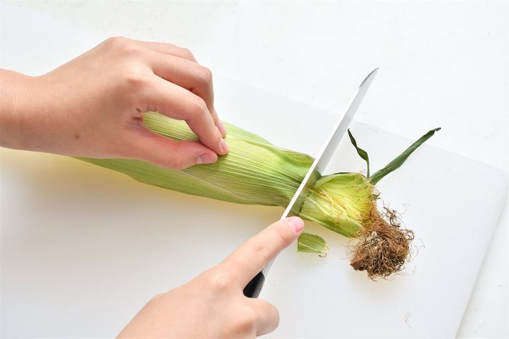 1. とうもろこしのヒゲをカットする。
