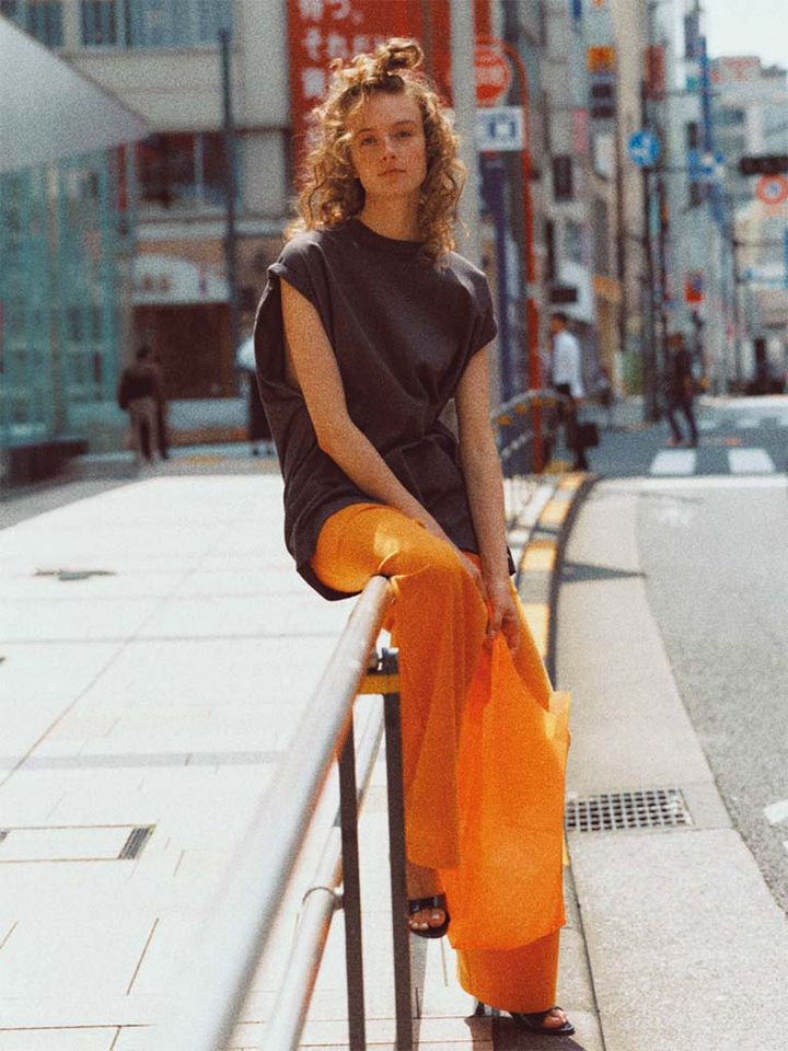 【POINT】白や黒だとややコントラストが強いから、落ち着いたグレーで派手一歩手前のバランスに。脱力感のあるシルエットも、ヴィヴィッドな色を身近に引き寄せる計算のうち。