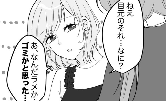 テレビで見たものと同じようなシールを買った……つもりだったのですが、私が購入したのはネイルで使うような細かいラメのようなもの。私としては「キラキラしているし、こんな感じでしょ」と思っていたものの……。親戚の家に行った際、従姉妹に「目元のそれなに?」と顔を覗き込まれ、「あ、ラメか。マスカラが落ちまくってんのかと……ゴミかと思った」と言われてしまいました。