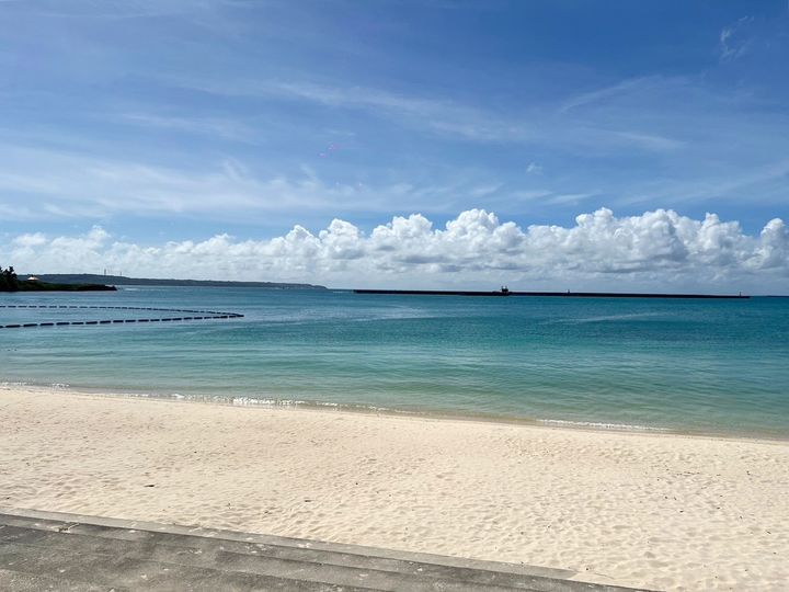 ビーチ沿いには公衆トイレや飲料の自動販売機もあり、サイクリングの途中のちょっとした休憩スポットとしてもベスト。海の美しさは言うまでもなく美しく、暑さで弱りそうな気持ちを癒してくれておすすめです。