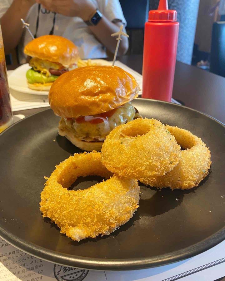 私が選んだ「ダグズ・プレミアム多良間牛ノーベジバーガー《LAVA》」は、たっぷりのチーズに包まれるように挟まった宮古郡多良間の牛を使ったパティが肉厚かつジューシーで絶品でした!