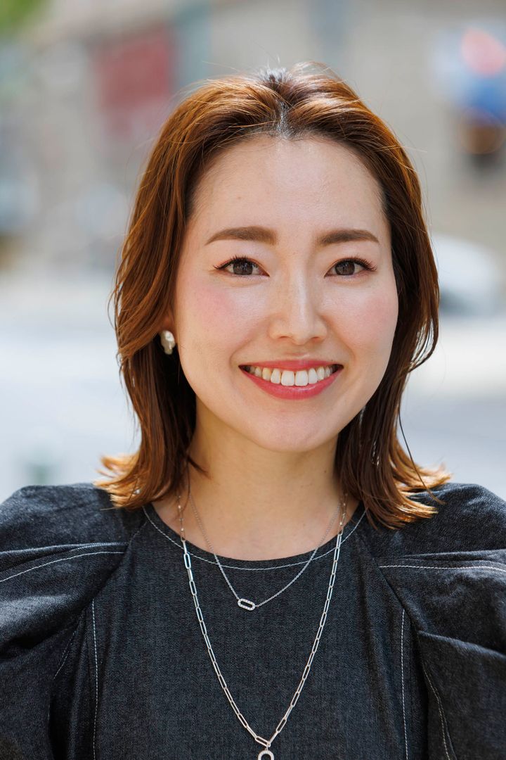 「全体的に外巻きに巻いてから、顔まわりのみをゆるく流れるように巻くのがポイント。これだけで柔らかい雰囲気になります。UNIKのスタイリングナノシルクヘアオイルがベタつかずオススメです」蓮岡真加さん・163㎝(36歳/5歳の男の子ママ)