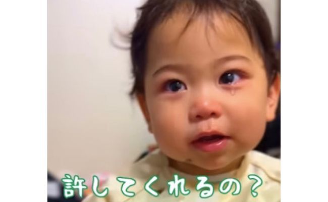 【可愛すぎ】初めてパパに叱られる1歳児の口