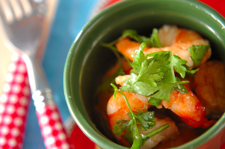 バルの定番、エビのアヒージョ。エビの旨味がたっぷり染み出したオイルは、バゲットにつけて良し、パスタや炒め物にも◎ プリップリの食感が楽しいエビのアヒージョ、おもてなしにも是非役立ててくださいね。