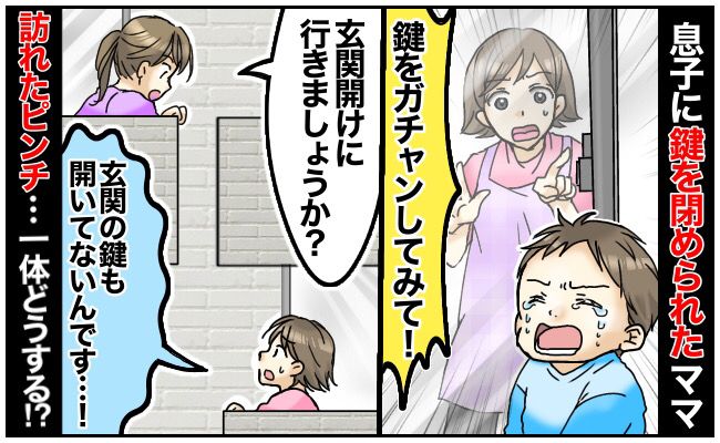 いつものように洗濯を干し部屋に戻ろうとした時、息子に鍵をかけられてしまい部屋に入れなくなりました。小さな息子に必死に「鍵をガチャンしてみて!」と色々と話しかけてみましたが当然のように無理で、時間が経つにつれ息子の泣き方も激しくなっていきました。