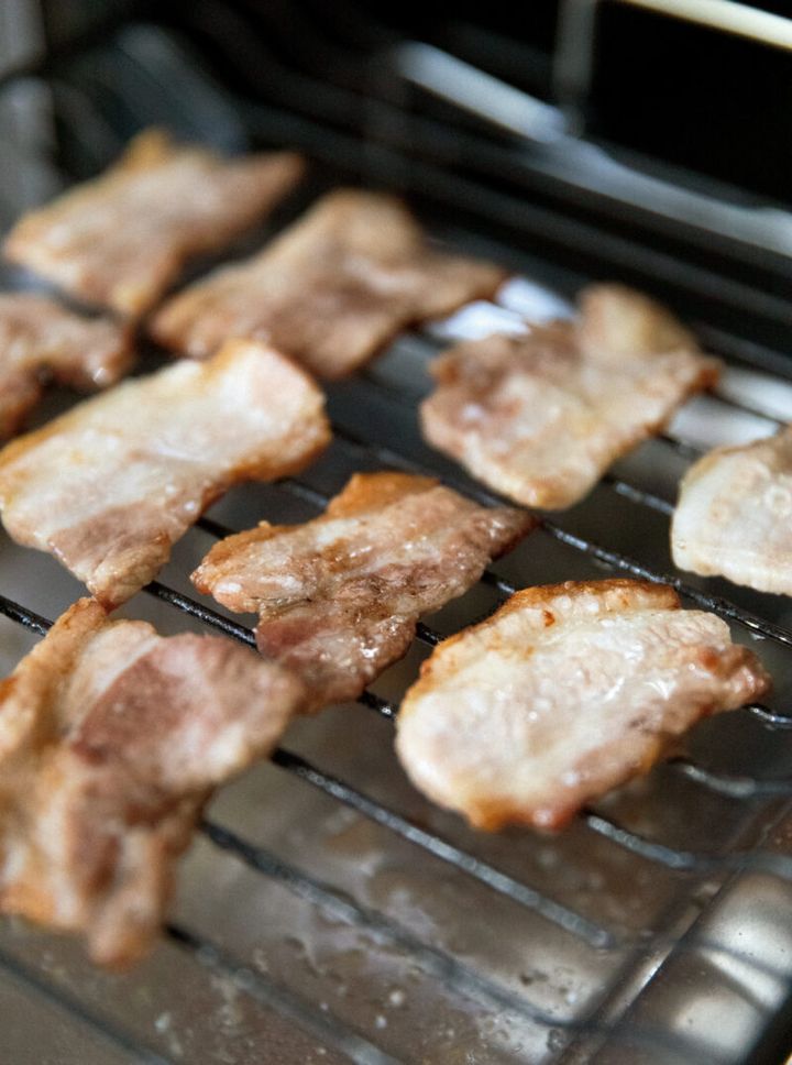 豚バラ肉はグリルで余分な脂を落としてヘルシーに。