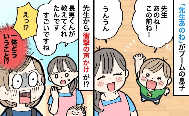 3. 「先生あのね」がブームな息子。後日、保育園の先生から「お母さん、すごいですね」と衝撃の声かけが!