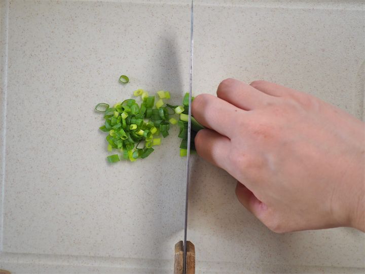 6. 青ねぎを小口切りにする。