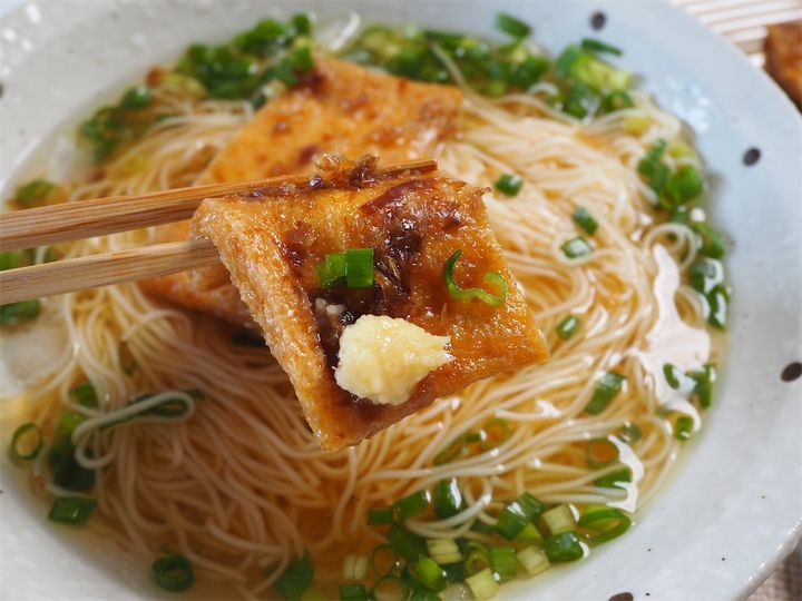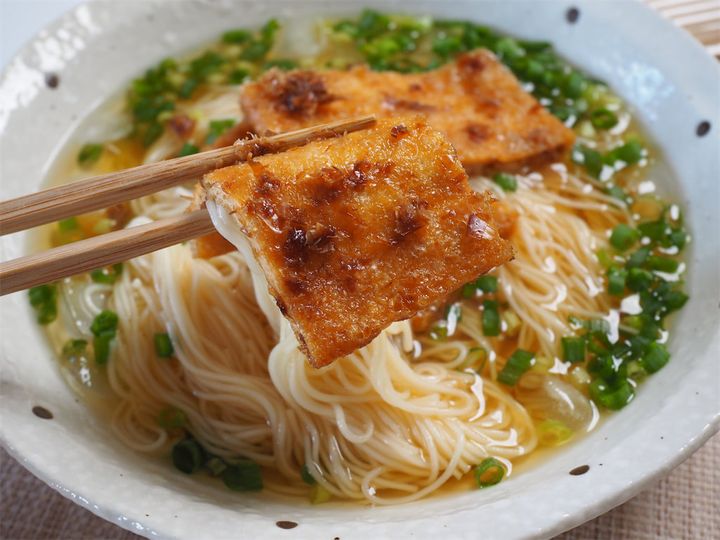 震えるほど旨い♡自家炊き“お揚げ”はお店レベル!酢醤油でさっぱり食べる「冷やしきつね素麺」に挑戦♪