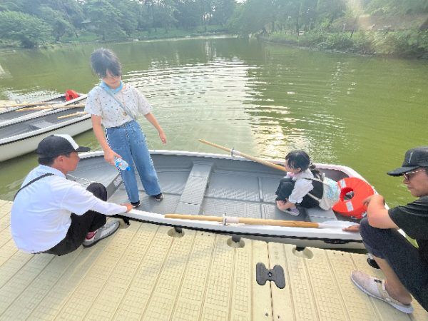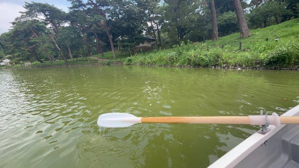 池の中から見る公園の景色は、いつもと違ってとても新鮮でした。大宮公園自体が大宮駅周辺より涼しいと感じていますが、水辺やボートの上はさらに涼しい風を感じられて良かったです。今の時期でも15時以降は日が傾くのでおススメだと言うことです。