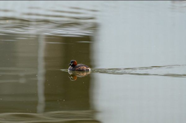 池で営巣しているカイツブリ。