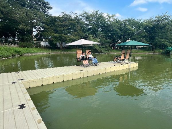池の上でくつろぐことができます。