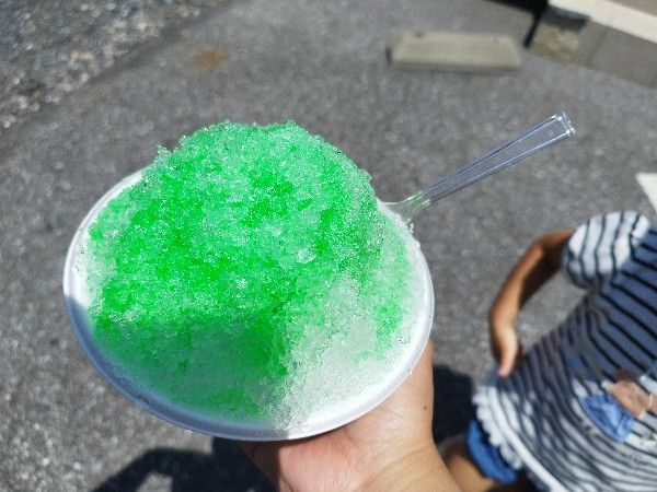 お店の前で食べる時は駐車場の横に椅子とパラソルを用意してくれるようです。