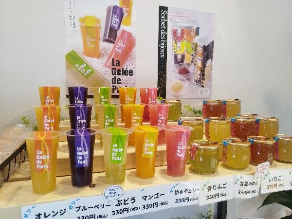 夏のお土産にぴったりのゼリーやソルベもあります。