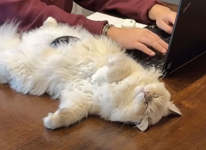 3. モフモフ猫さん、パソコンの隣で寝てたらマウスパッドにされちゃった。