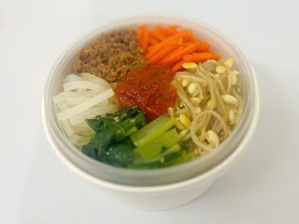 彩りが食欲をそそる「ビビンバ丼」にも野菜がたっぷりです(537円)。これは、暑い夏の日でも食べたくなりそう。