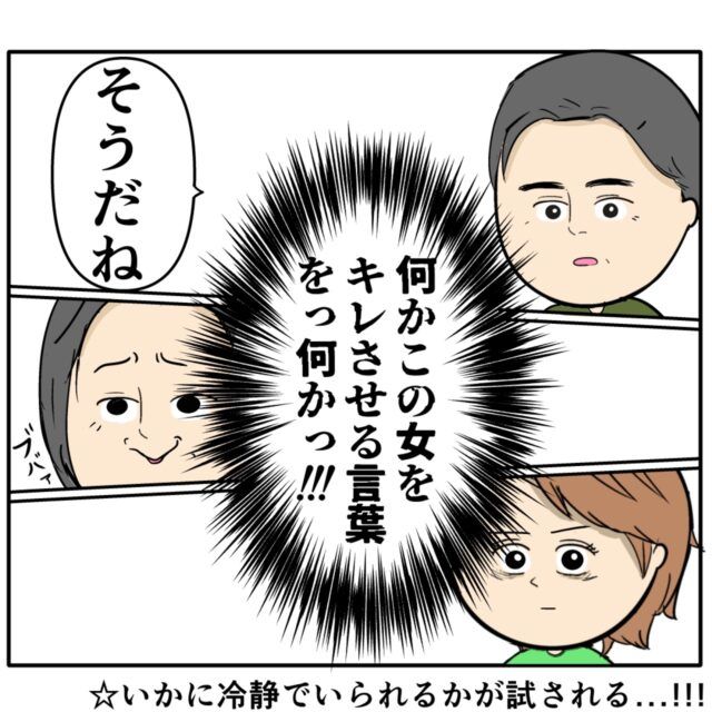 「何か・・この女をキレさせる言葉をっ何かっ!!!」やば美さんが心の中で呟きまくっている時に、「そうだね」と話し合いの意味をなしてないというすみれさんの提案に対して義父が答えました。