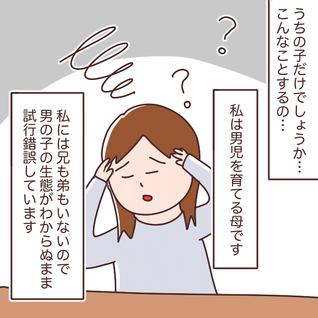 「うちの子だけでしょうか?こんなことするの?」男児を育てる私には兄も弟もいないので、男の子の生態がわからぬまま試行錯誤しています。