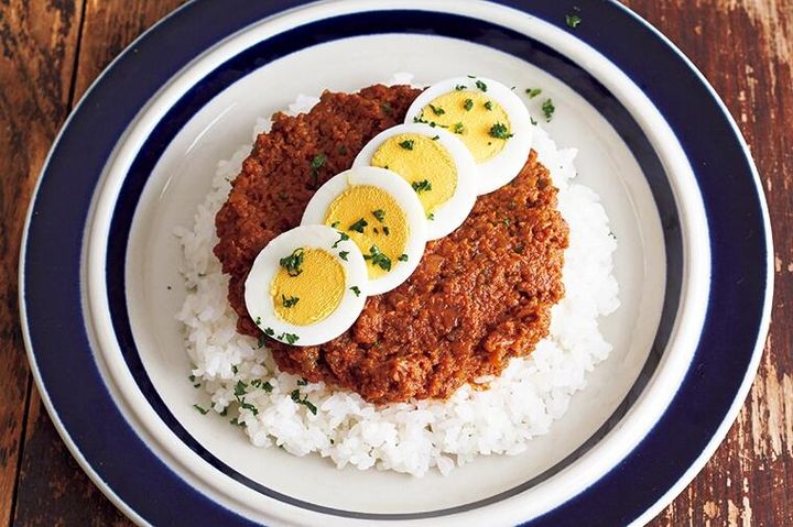 ドライカレーを牛の挽き肉だけでつくると、牛の脂でミルキーな風味に。ゆで卵を崩しながら食べるのがお薦めです!料理研究家の坂田阿希子さんに、つくってワクワクするド迫力のビーフカレーを教えてもらいました。