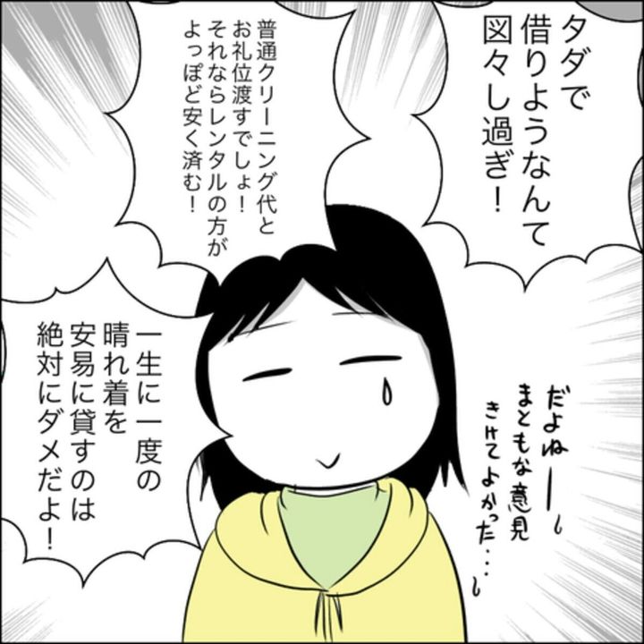 他のママ友が味方になってくれた上に、非常識なママ友の言動をハッキリと非難してくれました。これでもう、晴れ着の貸し借りについて、何も言ってこなくなりそうです。